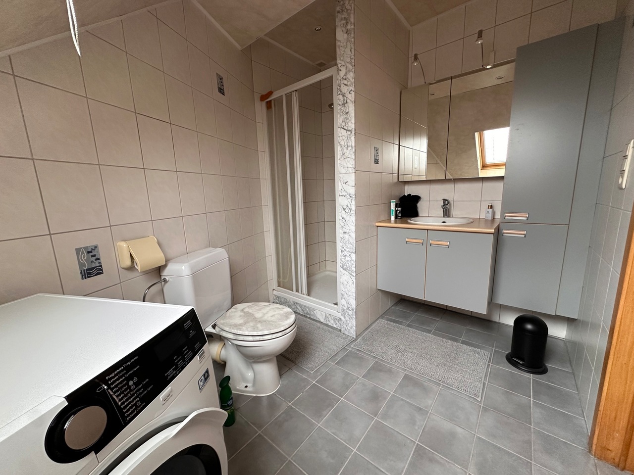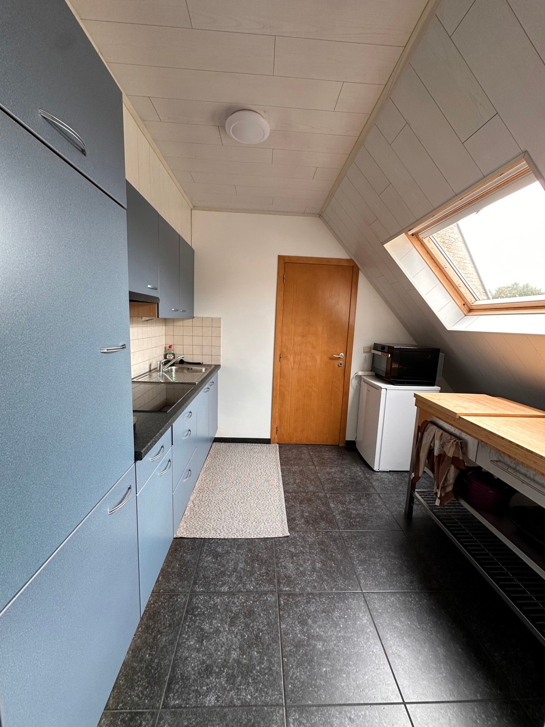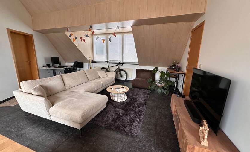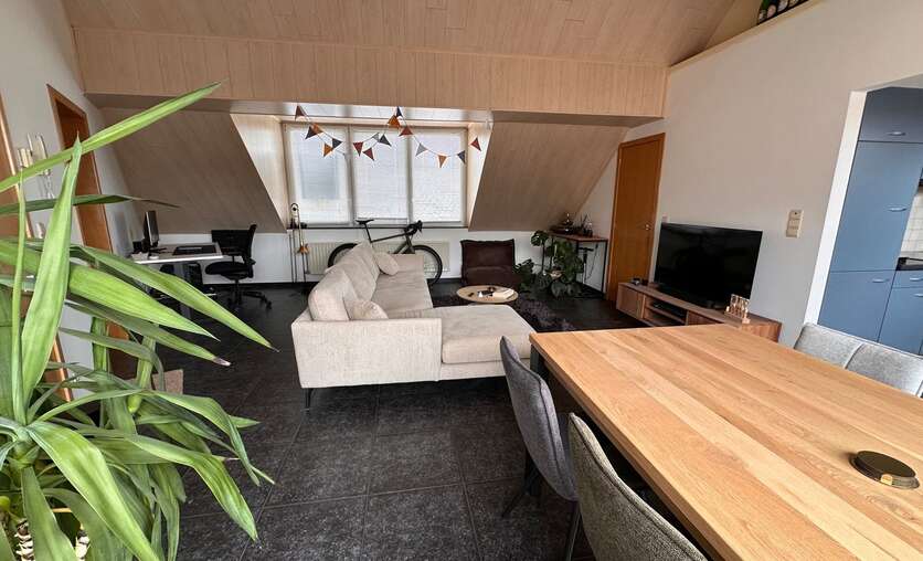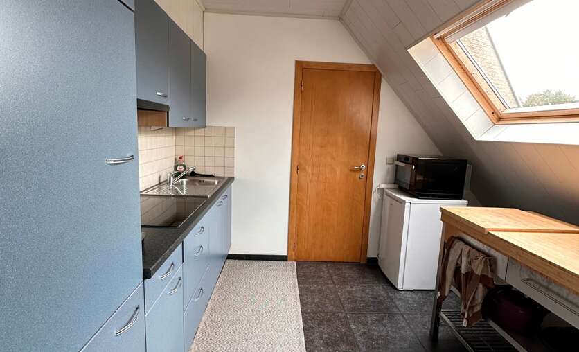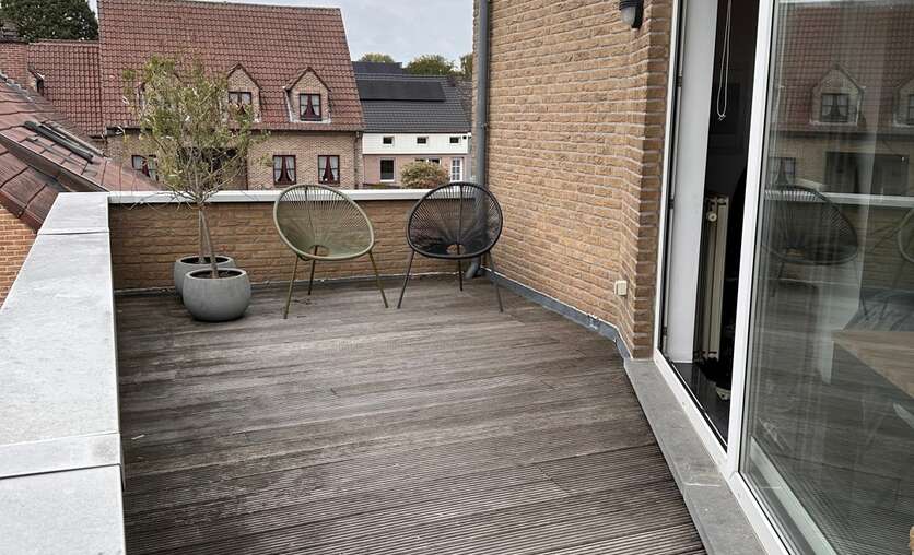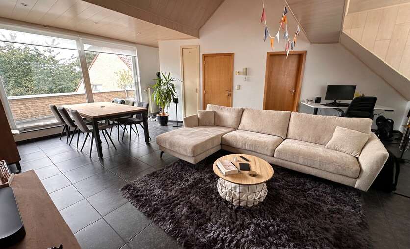 Dit charmante appartement bevindt zich op de tweede verdieping (zonder lift) van een kleinschalig gebouw met drie woonentiteiten, gelegen in centrum Okegem. Dankzij de centrale ligging ben je op wandelafstand van het station en openbaar vervoer. De ruime, open leefruimte baadt in het licht dankzij de grote raampartij op het zuid-zuidwesten, wat het appartement een bijzonder aangename en warme sfeer geeft. Vanuit de leefruimte heb je toegang tot een ruim terras met zit- en lighoek, waar je kunt genieten van een mooi vergezicht. De semi-uitgeruste keuken is voorzien van een aanpalende berging. De badkamer beschikt over een douche, toilet, wastafel met spiegelkast en ladekast. Hier is tevens de aansluiting voor de wasmachine voorzien.