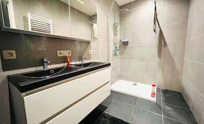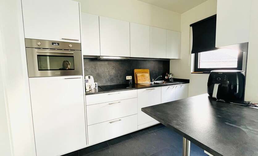 Inkomhal met apart gastentoilet, ruime lichtrijke woonkamer met open volledig ingerichte keuken, aansluitend de berging en toegang tot een ruim zonneterras. Verder zijn er 3 volwaardige slaapkamers, een badkamer met ligbad, lavabomeubel en instapdouche, en een aparte wasplaats met aansluiting voor het wasmachine. Zeer energiezuinig dankzij zonnepanelen en warmtepomp. Ondergrondse afgesloten garage inbegrepen.