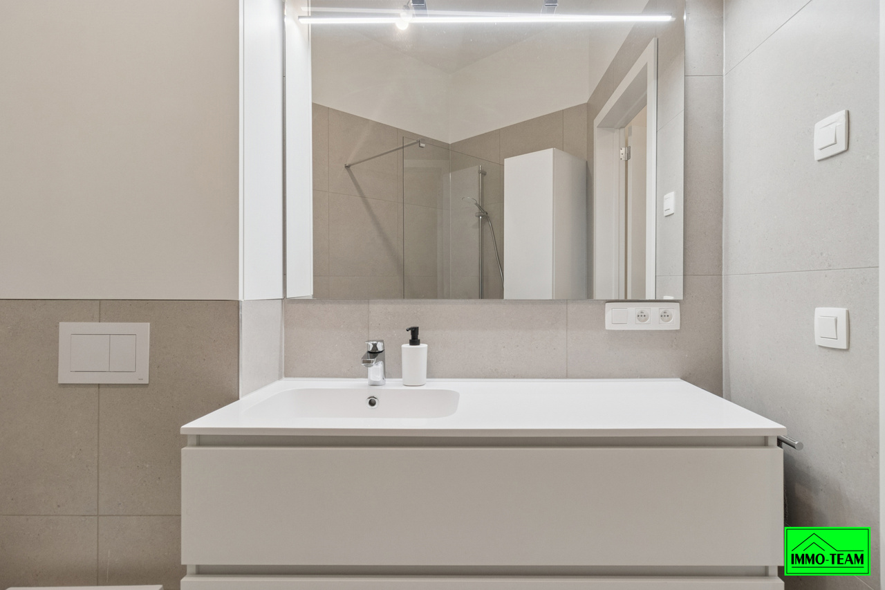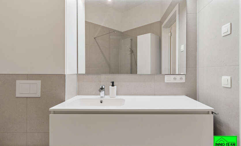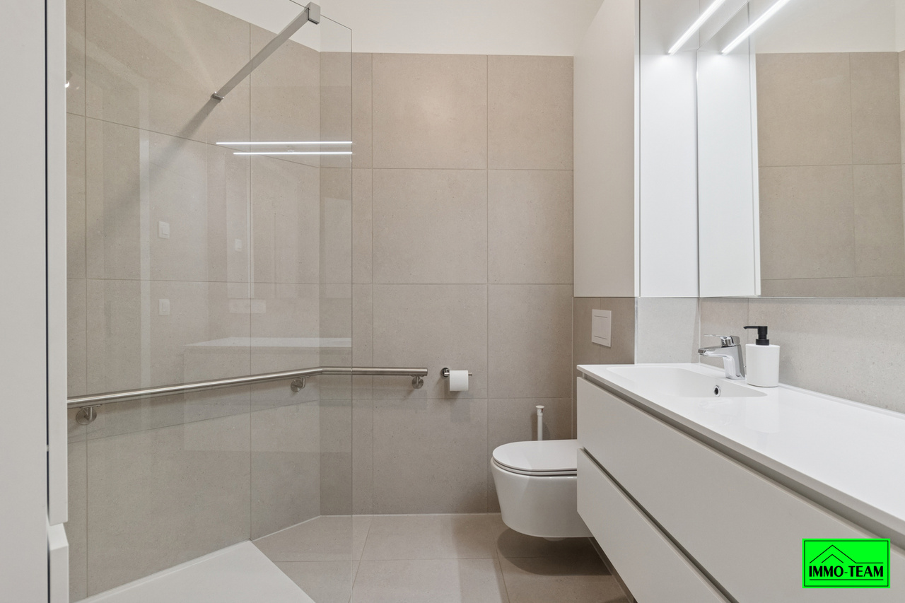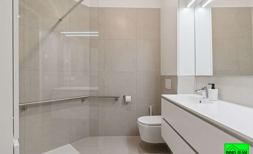 Op wandelafstand van het centrum van Liedekerke bevindt zich dit recent en energiezuinig appartement op de eerste verdieping van een modern gebouw met lift. Het appartement heeft een EPC-label A en is uitgerust met een geothermische warmtepomp, vloerverwarming met passieve koeling, wat zorgt voor een aangenaam wooncomfort het hele jaar door en een bijzonder laag energieverbruik. De indeling bestaat uit een inkomhal, een lichtrijke leefruimte met open, volledig ingerichte keuken, twee slaapkamers en een badkamer met douche. Bovendien beschikt het appartement over een overdekte garage en een privatieve kelderruimte. De bewoners kunnen ook gebruik maken van de aangename, gemeenschappelijke tuin. Extra troef: nog 3 jaar vrij van onroerende voorheffing. Dankzij de centrale maar rustige ligging, op wandelafstand van winkels, openbaar vervoer en het centrum, is dit een ideale woning voor wie comfortabel, modern en energiezuinig wil wonen. Contacteer ons voor meer info of een bezoek via 0478/059069 of info@immoteam.be