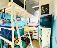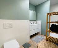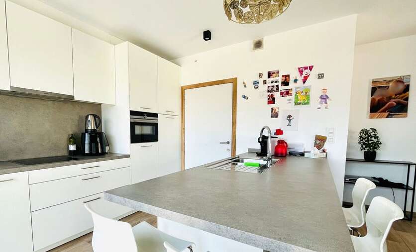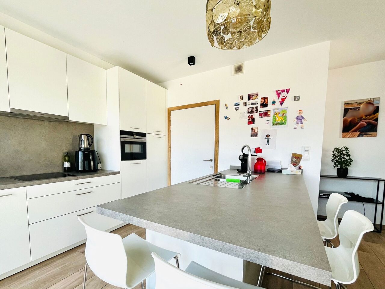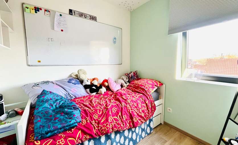 Bij het betreden van het appartement komt u in een verzorgde inkomhal met apart gastentoilet. Verder leidt de hal naar de lichtrijke woonkamer met open keuken, die samen een aangename leefruimte vormen. Aansluitend vindt u een ruime, praktische berging die extra opslagmogelijkheden biedt. Aan de voorzijde van het appartement bevindt zich een gezellig terras waar u in alle rust kan genieten. Op de bovenverdieping bevinden zich drie slaapkamers. De moderne badkamer is uitgerust met een douche, een dubbele lavabo en een tweede toilet.