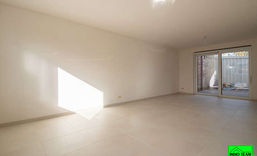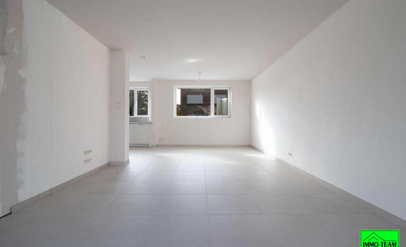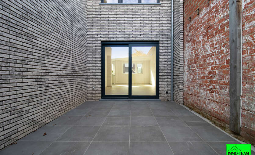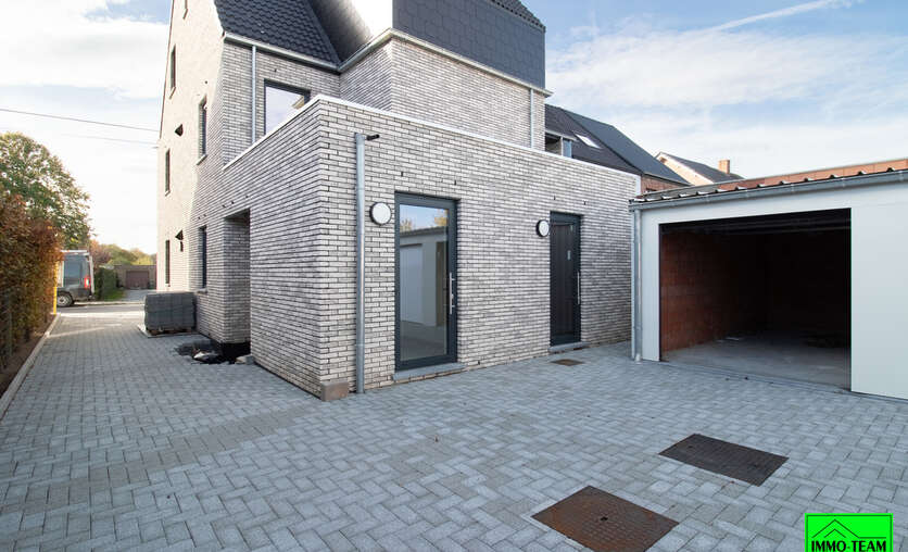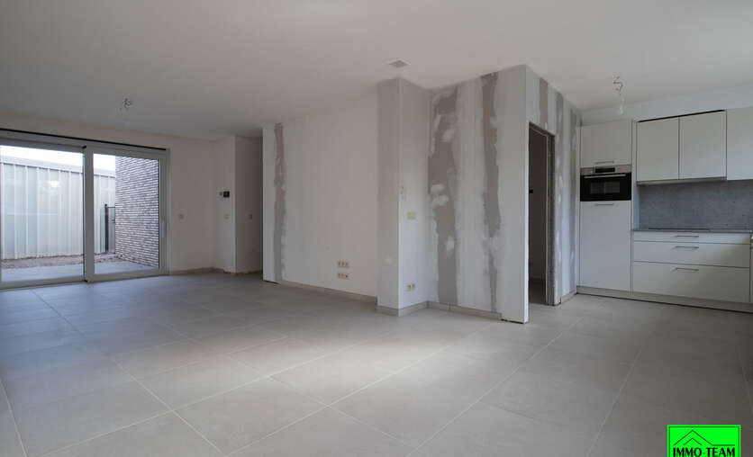 Nieuwbouw gelijkvloers appartement met terras en garage.