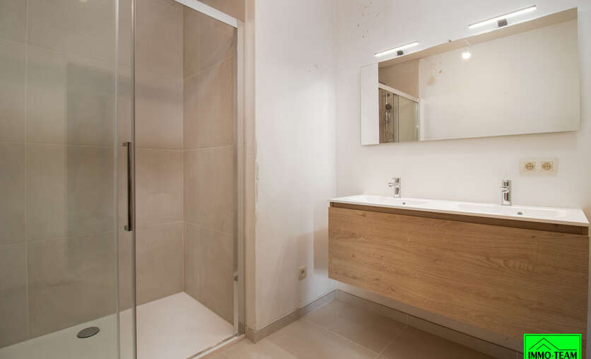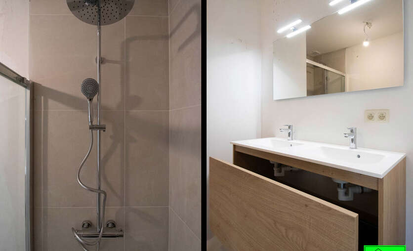 Dit recent gebouwd appartement (bwj: 2025) van 96m² bevindt zich op de Wanzelesteenweg in Serskamp, op een gunstige ligging: bushaltes op wandelafstand, het station op slechts 5 minuten rijden, en een vlotte aansluiting met de autostrade. Het gebouw is uitgerust met een gemeenschappelijke fietsenberging en een vuilnisberging. Achteraan het gebouw bevinden zich de garageboxen. Bij het binnenkomen betreed je de inkomhal die overloopt in de nachthal en voorzien is van een apart gastentoilet. De leefruimte straalt licht en ruimte uit, met een mooie zithoek en een half-open keuken. De keuken is volledig geïnstalleerd met hoogwaardige materialen en moderne toestellen, waaronder een koelkast, inductiekookplaat, combi-oven, dubbele spoelbak en vaatwasser; aansluitend bevindt zich een praktische berging waar je gemakkelijk al je voorraad kwijt kan. Vanuit de woonkamer heb je directe toegang tot het terras , waar je in alle rust kan genieten. De badkamer is stijlvol afgewerkt met een inloopdouche en een dubbel lavabomeubel. Verder zijn er twee slaapkamers van 14m² en 8m². Een tweede berging binnen het appartement biedt nog extra opbergruimte. Nog een extra pluspunt is de directe, private doorgang via een poortje van je garagebox naar je appartement. Het appartement zal nog volledig geschilderd worden voor de ingebruikname.