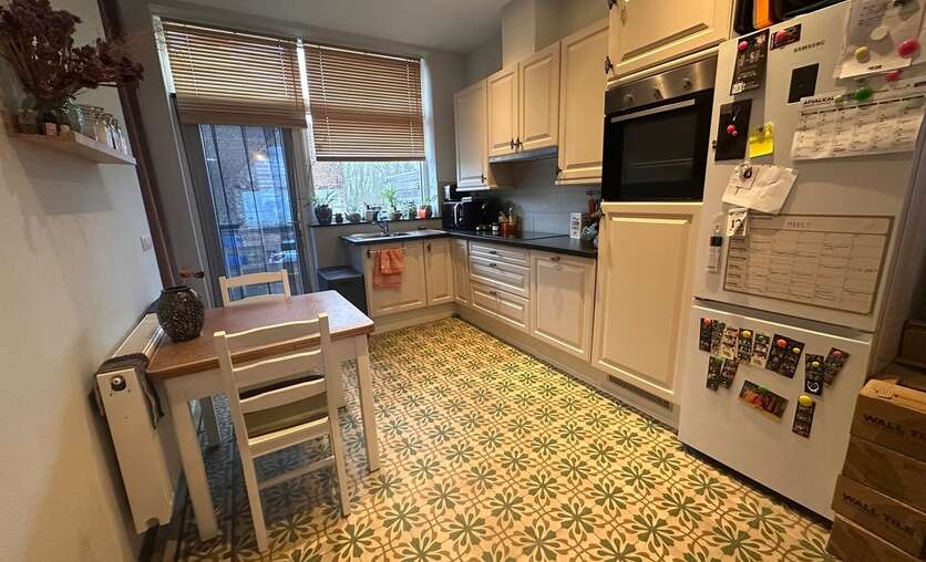 - Ingerichte keuken met zicht op de tuin