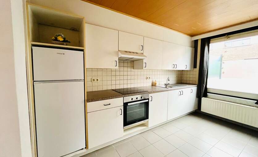In de Ed. Schelfhoutstraat 74 te Liedekerke bevindt zich deze aangename en verzorgde woning, onmiddellijk beschikbaar. De woning beschikt op het gelijkvloers over een inkomhal, een lichtrijke woonkamer met open en volledig ingerichte keuken, een praktische berging, een apart toilet en een badkamer met ligbad, douchestandaard en lavabomeubel. Aansluitend vind je het overdekt terras en de gezellige tuin met tuinhuis.