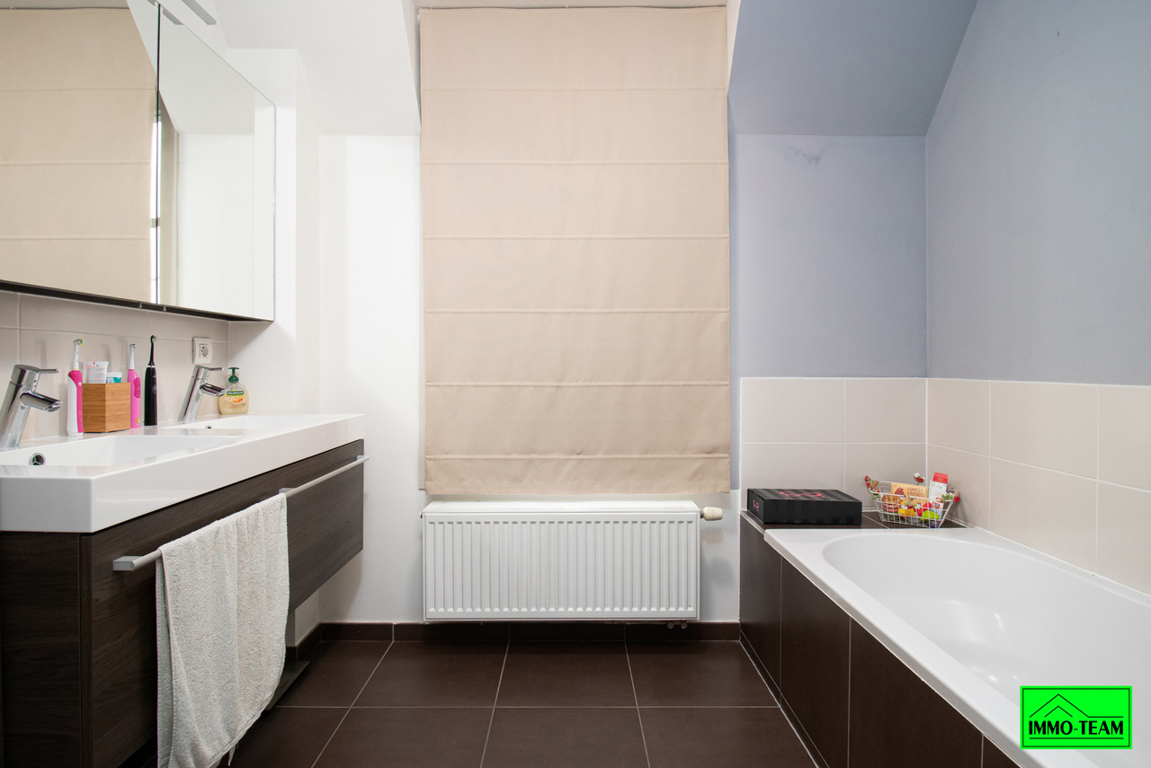 In een rustige en aangename woonwijk in Grembergen bevindt zich deze gezellige en recent gebouwde 2-gevelwoning uit 2012. De woning combineert hedendaags wooncomfort met een praktische indeling en een uitstekende energiezuinigheid dankzij het EPC-label A. Via de inkomhal met gastentoilet komt u binnen in de lichtrijke leefruimte met eet- en zithoek, die naadloos aansluit op de bureauruimte en de open, volledig ingerichte keuken. Aansluitend bevindt zich een praktische berging met aansluiting voor wasmachine en droogkast. De leefruimte geeft rechtstreeks uit op het terras en de ruime, onderhoudsvriendelijke tuin. Achteraan de tuin bevindt zich de garage, die toegankelijk is via de achterliggende straat en zorgt voor extra comfort en parkeergemak. Op de eerste verdieping zijn er drie slaapkamers en een badkamer uitgerust met een ligbad, douche en dubbele lavabo. Dankzij de recente bouw, de rustige ligging en het energiezuinige karakter is deze woning ideaal voor gezinnen of koppels die op zoek zijn naar comfortabel en duurzaam wonen in Grembergen. Interesse? Contacteer ons dan zeker om een bezoek te plannen via 0478/059 069 of info@immoteam.be
