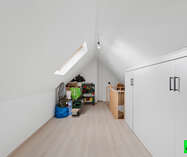 Instapklare 3‑gevelwoning in een rustige, residentiële wijk, afgewerkt met kwalitatieve materialen en veel aandacht voor comfort. Via de ruime inkomhal met gastentoilet komt u binnen in een open, zeer lichte leefruimte en eetkamer met gezellige houthaard en airconditioning, met directe toegang tot de fraai aangelegde (zuidgerichte) tuin en terras. Aansluitend bevindt zich de halfopen, volledig uitgeruste keuken met praktische berging en aansluiting voor wasmachine. Op het verdiep zijn twee ruime slaapkamers, waarvan de master met dressing; de badkamer is afgewerkt met dubbele lavabo, vrijstaand ligbad, toilet en ruime inloopdouche. Op zolder is een derde slaapkamer, ideaal als logeerkamer, hobbyruimte of thuiswerkplek.
