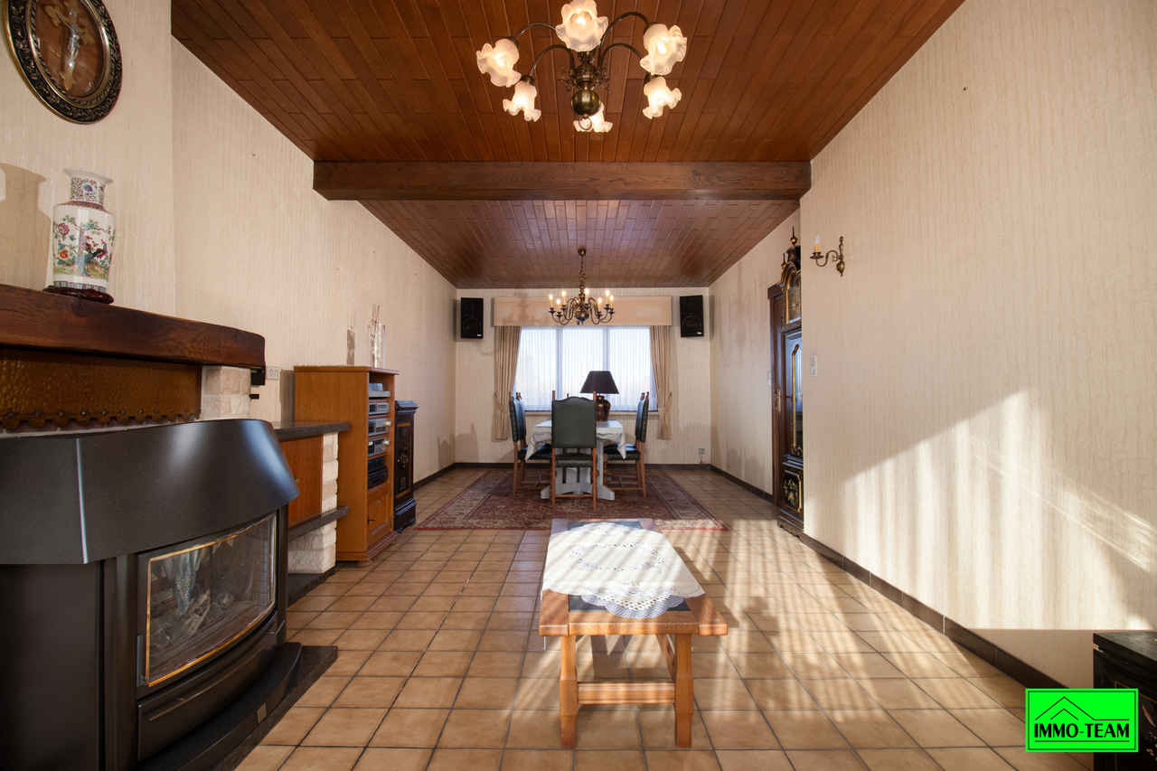 Ontdek het potentieel van deze op te frissen 3-gevelwoning op een gunstige ligging in Liedekerke, in de buurt van winkels, scholen en openbaar vervoer. Dankzij de nabijheid van belangrijke verbindingswegen geniet je bovendien van een vlotte bereikbaarheid. De woning verwelkomt je met een inkomhal die toegang biedt tot de gezellige leefruimte met zithoek en eetkamer. Aansluitend bevindt zich een aparte, geïnstalleerde keuken. Achteraan de woning vind je een ruime prachtige tuin met overdekt terras. In de tuin bevindt zich een bijgebouw dat dienst doet als berging en er is tevens een aparte garage aanwezig. Op de eerste verdieping bevinden zich twee slaapkamers en een badkamer met ligbad en 2de toilet. De zolderruimte biedt bovendien mogelijkheden om extra kamers te creëren. Ten slotte zorgt de kelder voor bijkomende bergruimte. Interesse om van deze woning je thuis te maken? Contacteer ons via 0478/059069 of info@immoteam.be