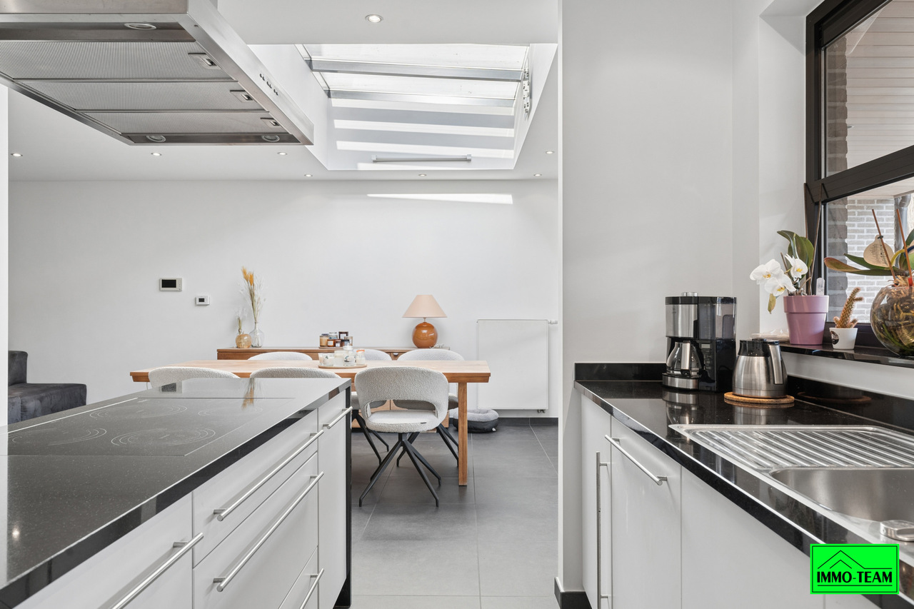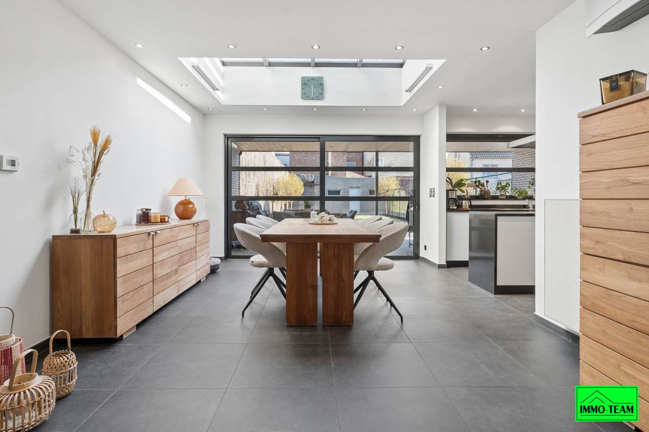 Instapklare, energiezuinige gezinswoning in het hart van Liedekerke, op wandelafstand van winkels, scholen, openbaar vervoer en alle andere dagelijkse voorzieningen. Via de inkomhal met gastentoilet komt u in de lichtrijke en aangename leefruimte met gezellige zithoek en ruime eetkamer. De volledig geïnstalleerde open keuken sluit hier naadloos op aan en vormt samen met de leefruimte een mooie, open leefomgeving. De leefruimte geeft rechtstreeks uit op het ruime overdekte terras en de verzorgde tuin, ideaal om in alle rust te genieten van het buitenleven. Achteraan bevindt zich bovendien een praktische buitenberging. De woning beschikt daarnaast over een inpandige garage en een extra berging, wat zorgt voor voldoende opslagruimte en extra comfort. Op het eerste verdiep bevinden zich twee ruime en volwaardige slaapkamers en een bijzonder luxueuze badkamer uitgerust met zowel een comfortabel zitbad als een aparte douche. Het tweede verdiep werd volledig ingericht als een ruime derde slaapkamer. De woning geniet van een kwalitatieve afwerking met hoogwaardige materialen, combineert ruimte, comfort en een centrale ligging en is bovendien energiezuinig met een EPC-score B. Interesse in een bezoek? Contacteer ons via 0478/05 90 69 voor meer informatie of een afspraak.