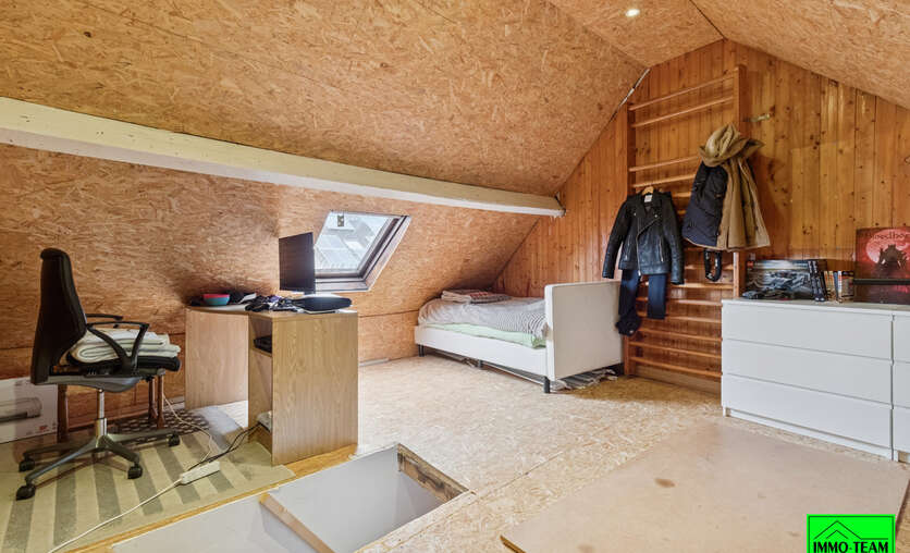 Deze 2-gevelwoning is uitstekend gelegen, op wandelafstand van winkels, scholen en openbaar vervoer én op slechts 5 minuten van de E40, wat zorgt voor een vlotte verbinding. Via de inkomhal met gastentoilet betreedt u de woning. De leefruimte bestaat uit een gezellige zit- en eethoek en sluit aan op de semi-open keuken. Aansluitend bevindt zich een berging met plaats voor wasmachine en droogkast. Op de eerste verdieping zijn er twee slaapkamers en een badkamer met ligbad. De zolderkamer, bereikbaar via vaste trap, werd ingericht als 3de slaapkamer en dient verder worden afgewerkt. Buiten geniet u van een terras en een afgesloten tuin. De woning vraagt enkele verfraaiingswerken wat u de kans geeft om alles naar eigen smaak in te richten. Ideaal voor starters of investeerders.