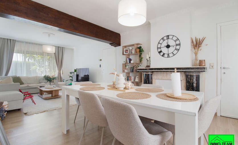 Deze recent gerenoveerde halfopen bebouwing bevindt zich in het hart van Pamel (Roosdaal) en combineert een doordachte indeling met aangename lichtinval en kwaliteitsvolle afwerking. Bij het binnenkomen word je verwelkomd in een ruime inkomhal die leidt naar een royale leefruimte. De woonkamer en eetkamer vormen samen een open, lichtrijke plek waar het aangenaam vertoeven is. Aansluitend bevindt zich een aparte bureau- of hobbyruimte (of extra slaapkamer), ideaal voor wie van thuis uit werkt of een stille ruimte zoekt. De volledig uitgeruste keuken sluit logisch aan op het leefgedeelte en biedt een vlotte verbinding met de tuin. Op de bovenverdieping bevinden zich 3 slaapkamers en een douchekamer met toilet. De buitenruimte omvat een voortuin, een ruime achtertuin met tal van mogelijkheden, een garage en meerdere autostaanplaatsen op eigen terrein. De woning is technisch en structureel instapklaar. De belangrijkste renovaties zijn reeds achter de rug. Mits plaatsing van dakisolatie en vervanging van enkele ramen voldoet u aan de renovatieverplichtingen. De ligging is bijzonder praktisch: centraal in Pamel, met winkels, scholen en openbaar vervoer op wandelafstand. Ook Ninove en Brussel zijn vlot bereikbaar, wat de locatie extra aantrekkelijk maakt.Deze woning is ideaal voor wie op zoek is naar ruimte, comfort en een instapklare woning met buitenruimte, op een centrale en goed bereikbare locatie. Interesse? Contacteer ons zeker voor een bezoek via info@immoteam.be of 0478/059069