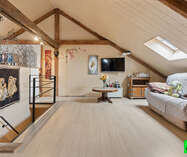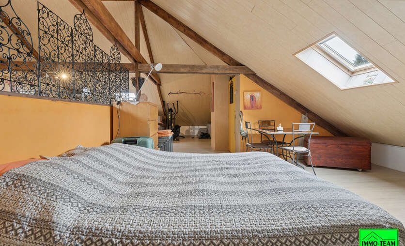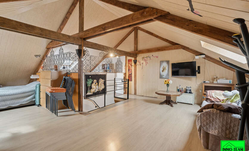 Gelegen in een rustige en gegeerde buurt met uitstekende bereikbaarheid, biedt deze zeer ruime 4-gevelwoning 4 ruime slaapkamers, een garage voor 2 wagens, een ruime tuin met zuidgericht terras en een bijgebouw met tal van mogelijkheden. Bij het betreden van de woning komt u in de inkomhal die toegang geeft tot de verschillende ruimtes op het gelijkvloers. Deze bestaat uit: een ruime inkomhal, zeer ruime leef‑ en eetruimte, 3 volwaardige slaapkamers, badkamer, WC, keuken met ontbijtruimte en veranda. De vierde slaapkamer bevindt zich op de verdieping. De zolder is eveneens volledig omgebouwd tot slaapkamer met leefruimte en bureau. Voor extra comfort, is de afgewerkte zolder uitgerust met een ventilatiesysteem. De woning beschikt eveneens over een ondergrondse garage met plaats voor 2 wagens. Bovendien is er een heel praktische ruime kelder, met wasruimte, berging en werkruimte. Buiten bevindt zich een ruime tuin met zuidgericht terras. Een mooie troef is het bijgebouw dat kan omgebouwd worden tot atelier, hobbyruimte of poolhouse. Gunstig EPC dankzij o.a. zonnepanelen, muurisolatie, HR‑beglazing en dakisolatie. De ligging combineert rust met een vlotte bereikbaarheid. Het station van Essene‑Lombeek bevindt zich op wandelafstand en de E40 is bereikbaar in minder dan 5 minuten, wat zorgt voor een vlotte verbinding tussen Brussel en Gent.