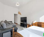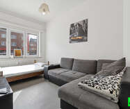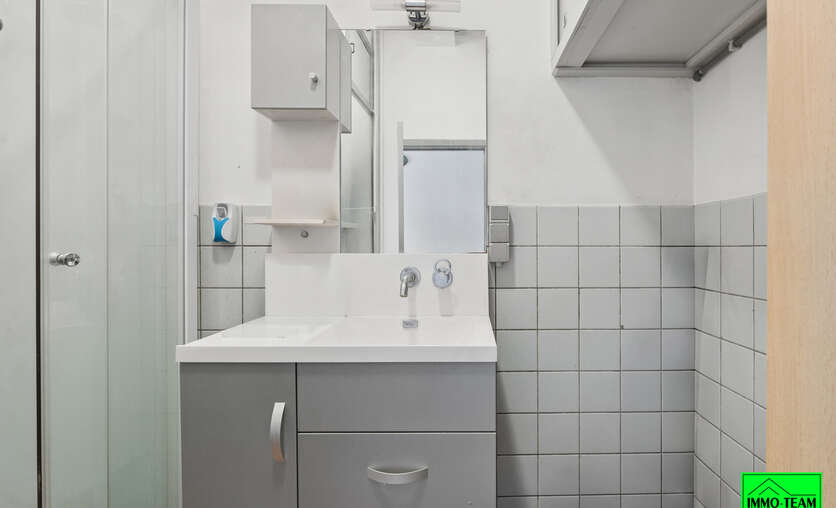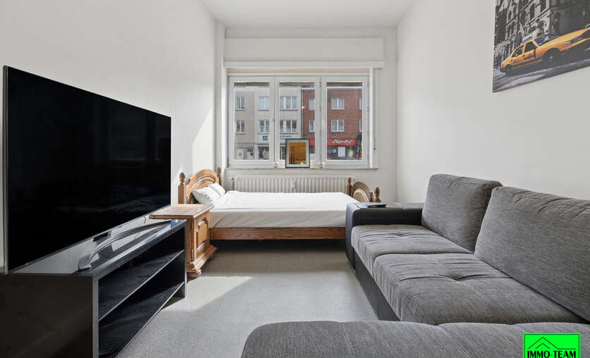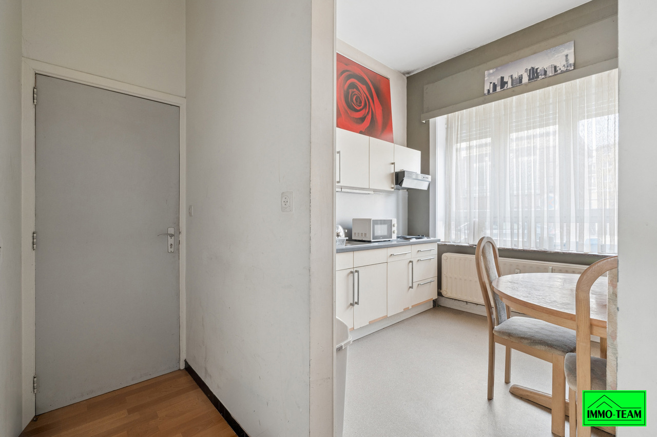 Via de inkomhal kom je in de lichtrijke keuken, die meteen een aangename sfeer geeft. Verder in de gang bevindt zich de badkamer met inloopdouche en lavabo, naast het aparte toilet. De studio beschikt bovendien over een privékelder, ideaal voor extra opslag. De leefruimte geeft dankzij de hoge plafonds een ruimtelijk gevoel. De ligging is uitstekend: pal op de Ninoofsesteenweg, met snelle en vlotte verbindingen naar Brussel, zowel met de auto als het openbaar vervoer. Lage beheerskosten dankzij een bijkomende inkomstenstroom in het gebouw! Kortom: een compact, slim ingedeeld en stabiel verhuurd gelijkvloers investeringspand op een strategische locatie — ideaal voor de startende investeerder. Interesse? Plan nu je bezoek in via info@immoteam.be of 0478 059 069.