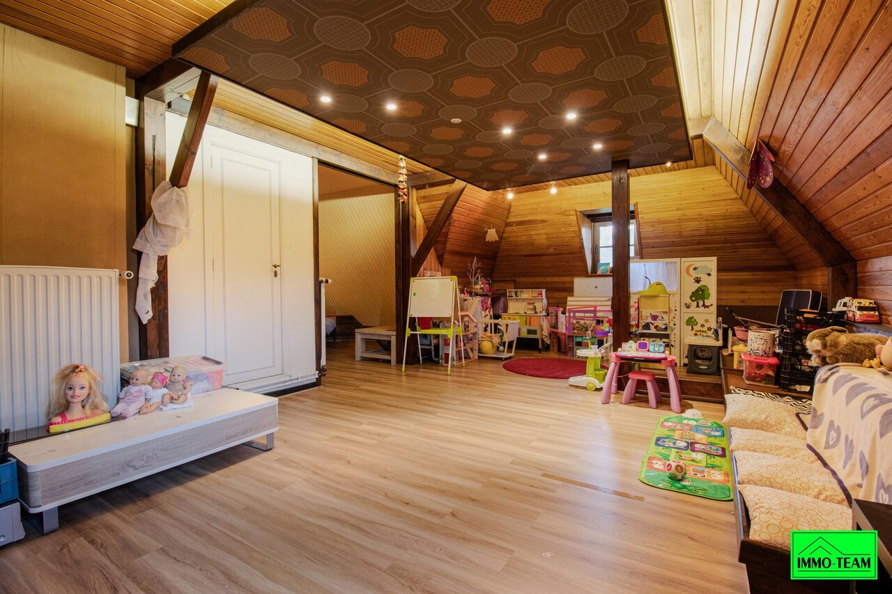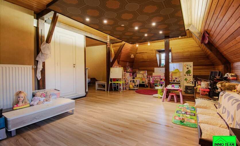 In een bijzonder rustige en groene omgeving, midden in het prachtige Pajottenland, bevindt zich deze charmante villa die in 2019 grotendeels werd gerenoveerd. De woning combineert tijdloze architectuur met hedendaags wooncomfort en biedt een ideaal kader voor wie ruimte, rust en privacy zoekt. Bij het binnenkomen word je verwelkomd in een ruime inkomhal die meteen het open en luchtige karakter van de woning weerspiegelt. De lichtrijke en gezellige leefruimte sluit naadloos aan op de modern ingerichte open keuken met mooi zicht op de tuin dankzij de grote raampartijen. De woning beschikt vier ruime slaapkamers, waarvan de vierde zich bevindt op de zolderverdieping. Deze grote kamer kan ook perfect dienen als hobbyruimte of mancave. Verder zijn er twee volledig uitgeruste badkamers, wat zorgt voor optimaal comfort. Verder is er ook nog een praktische bureauruimte, ideaal voor thuiswerk of administratie In de grote kelder vind je extra opslagruimte of mogelijkheden voor hobby’s, stockageruimte of een wijnkelder. Buiten vormen de brede oprit, carport en geïntegreerde garage een duidelijke meerwaarde in dagelijks gebruik. Het riante, zonnige terras biedt een prachtig uitzicht op de groene, kindvriendelijke tuin en het omliggende landschap. Deze villa verenigt een rustige ligging met een kwalitatieve afwerking en een fantastisch ruimtegevoel. Klinkt dit als muziek in de oren? Contacteer ons dan snel om een bezoek te plannen via 0478/059 069 of info@immoteam.be