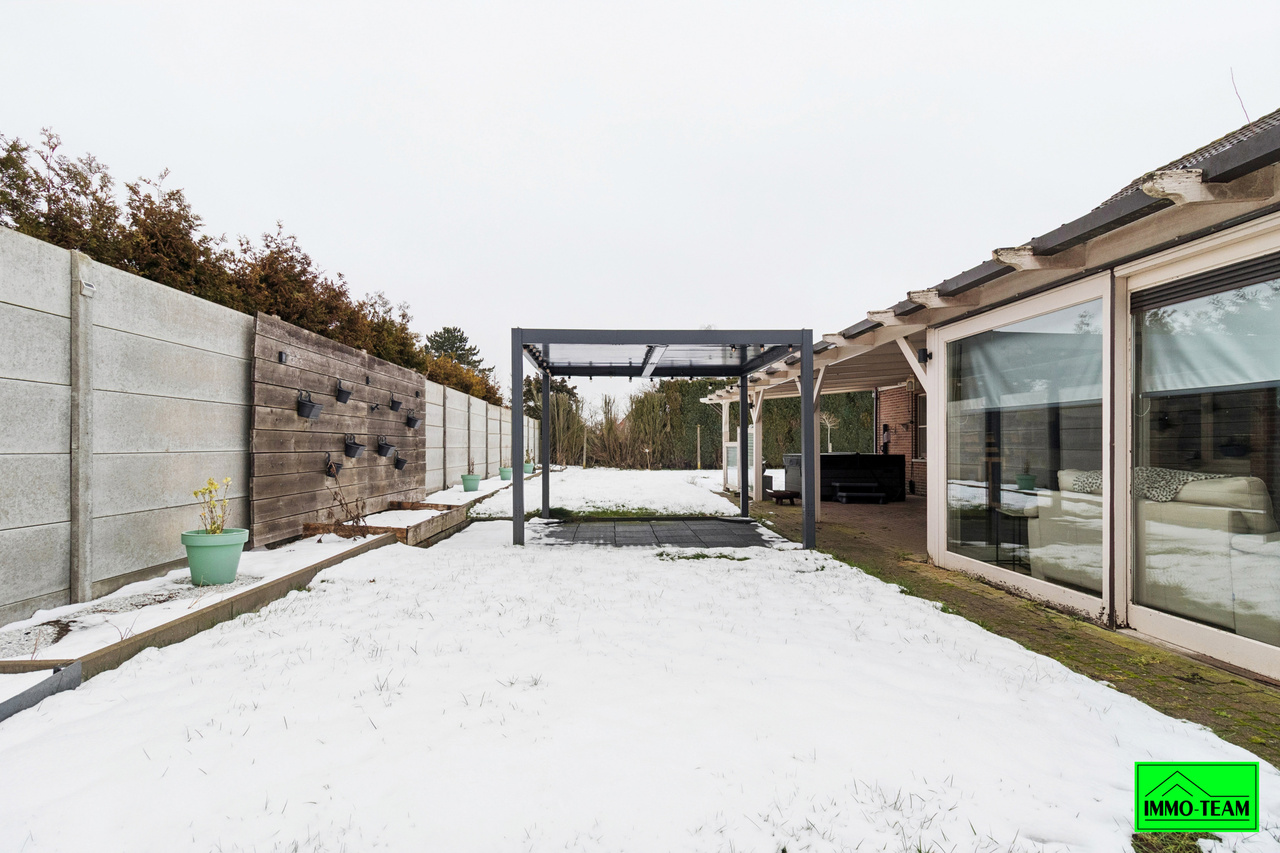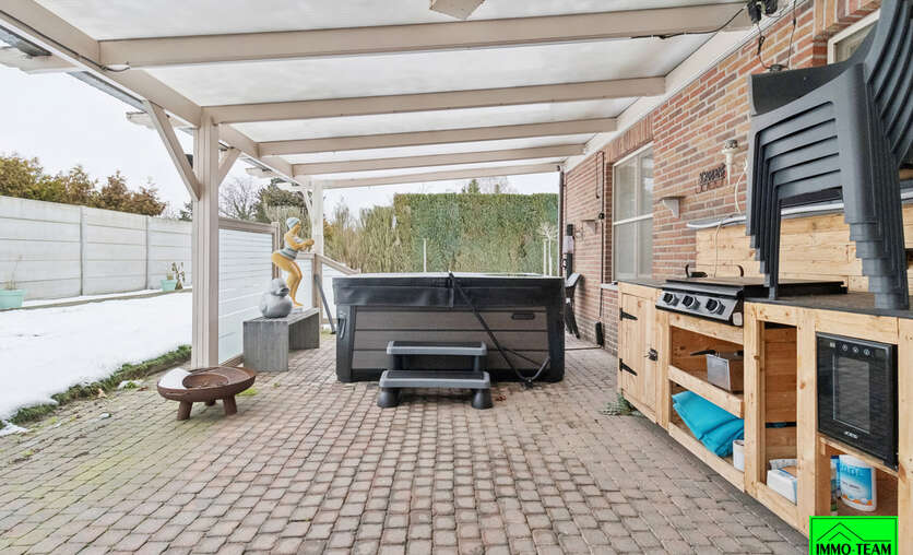 Zeer rustig gelegen en toch vlak bij het centrum, bevindt zich deze prachtige ruime villa te Ternat. Scholen, winkels en openbaar vervoer bevinden zich op wandelafstand met bovendien het op- en afrittencomplex van de E40 (Brussel–Gent) op slechts enkele minuten rijden. De woning, die recent grotendeels in een nieuw jasje werd gestoken, is bijzonder ruim en praktisch ingericht, waarbij alle woonfuncties zich op het gelijkvloers bevinden. U wordt verwelkomd in een ruime inkomhal met gastentoilet, die toegang biedt tot de lichtrijke en ruime woonkamer met eet-en zithoek en de semi-open volledig geïnstalleerde keuken (2023). De villa beschikt over drie volwaardige slaapkamers, een dressing en een recente badkamer met moderne inloopdouche, dubbele lavabo en tweede toilet. Daarnaast is er een bureau, ideaal voor thuiswerk of hobbyruimte. De ruime geïsoleerde zolder, toegankelijk via uittrekbare trap, biedt heel wat extra bergruimte. De inpandige garage met automatische poort biedt plaats aan twee wagens met ook heel wat extra bergruimte. Verder is er ook nog een aparte berging met aansluiting wasmachine/droogkast. Tenslotte zorgen de ruime veranda, het overdekte terras en de aangename tuin voor heerlijke momenten van ontspanning in alle privacy. Mogelijkheid tot overname jacuzzi aangekocht in 2025. (4000€) Interesse ? Contacteer ons snel via 0478/059069 of info@immoteam.be en ontdek zelf het comfort en de rust die deze woning te bieden heeft.